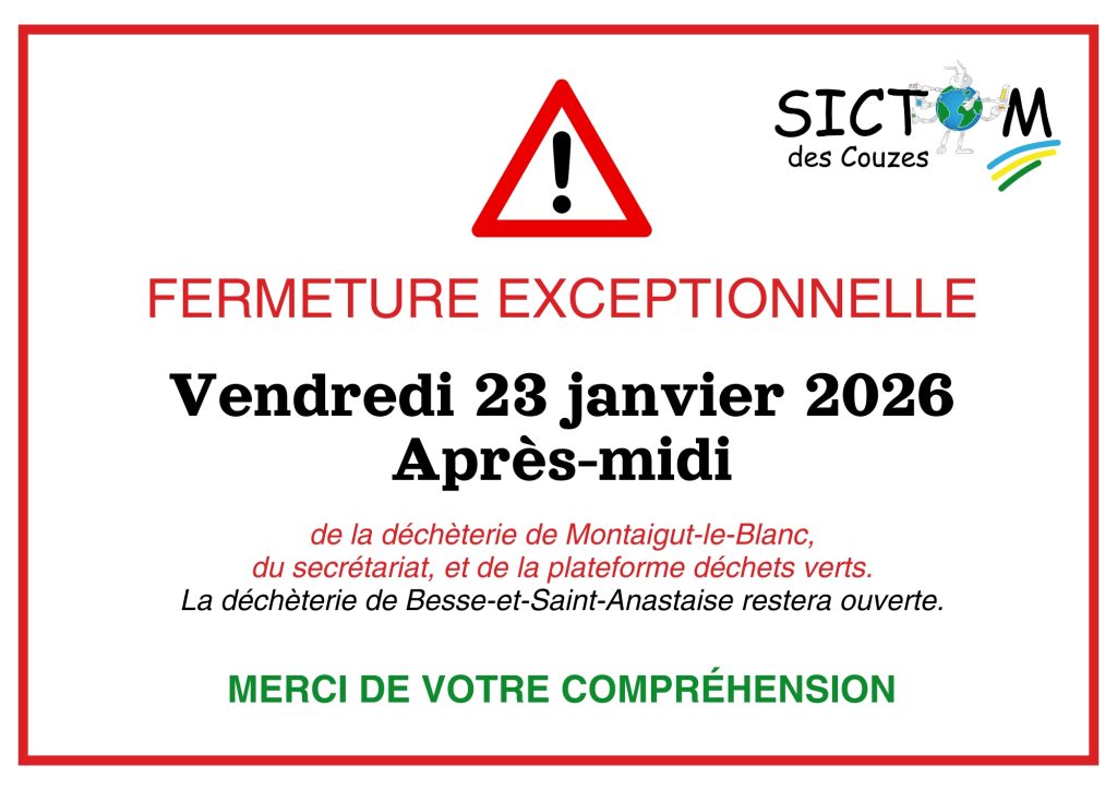 FERMETURE LE VENDREDI 23 JANVIER APRES-MIDI