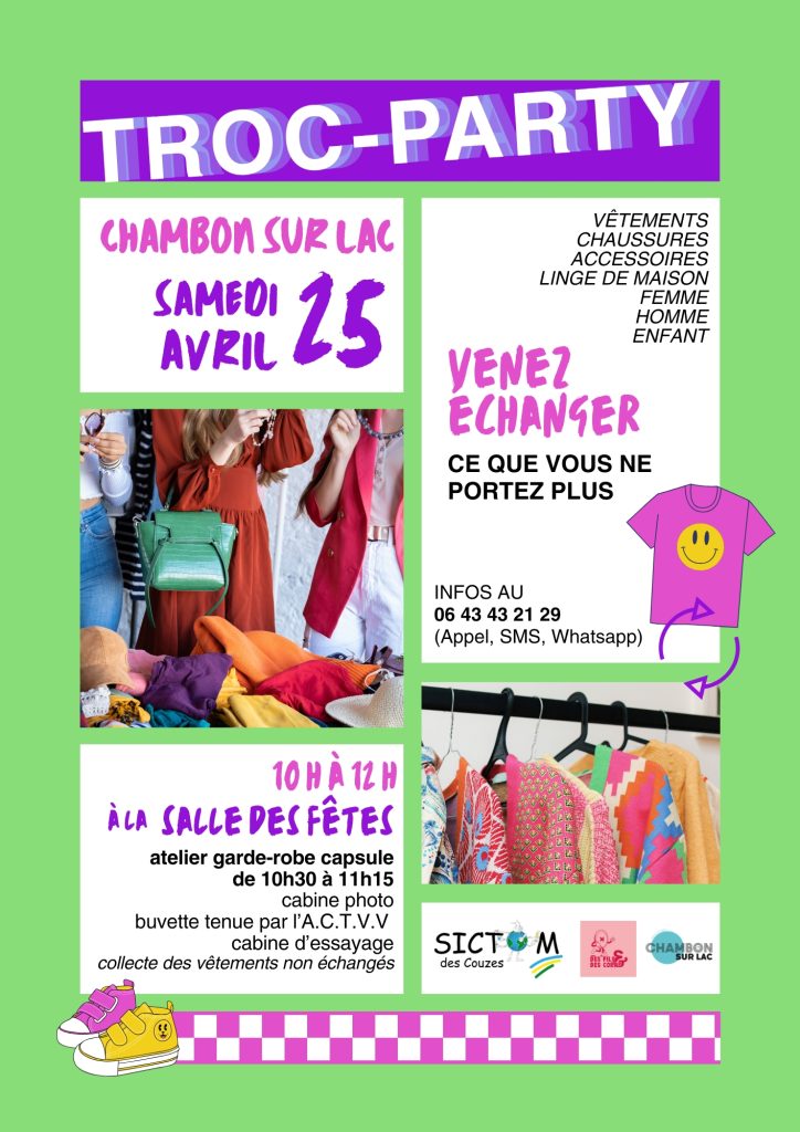 Le samedi 25 avril, la commune de Chambon-sur-Lac accueillera la Troc-Party du SICTOM des Couzes, de 10h à 12h, dans…